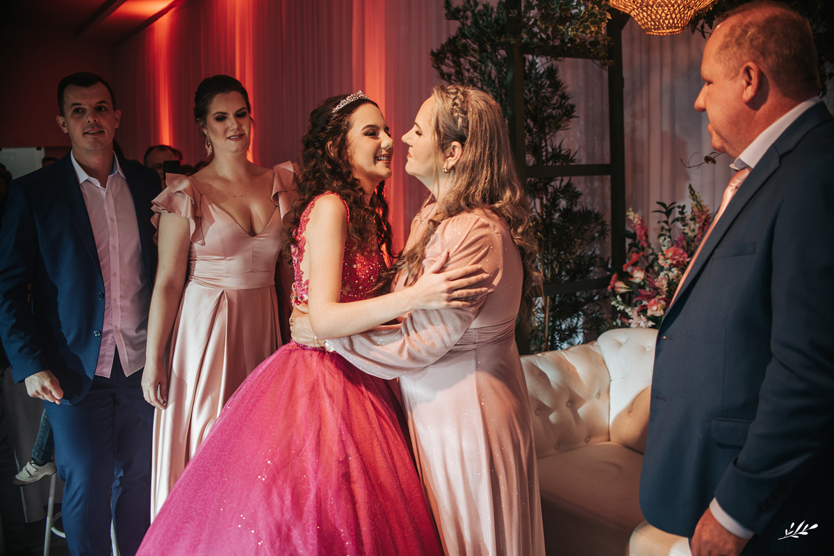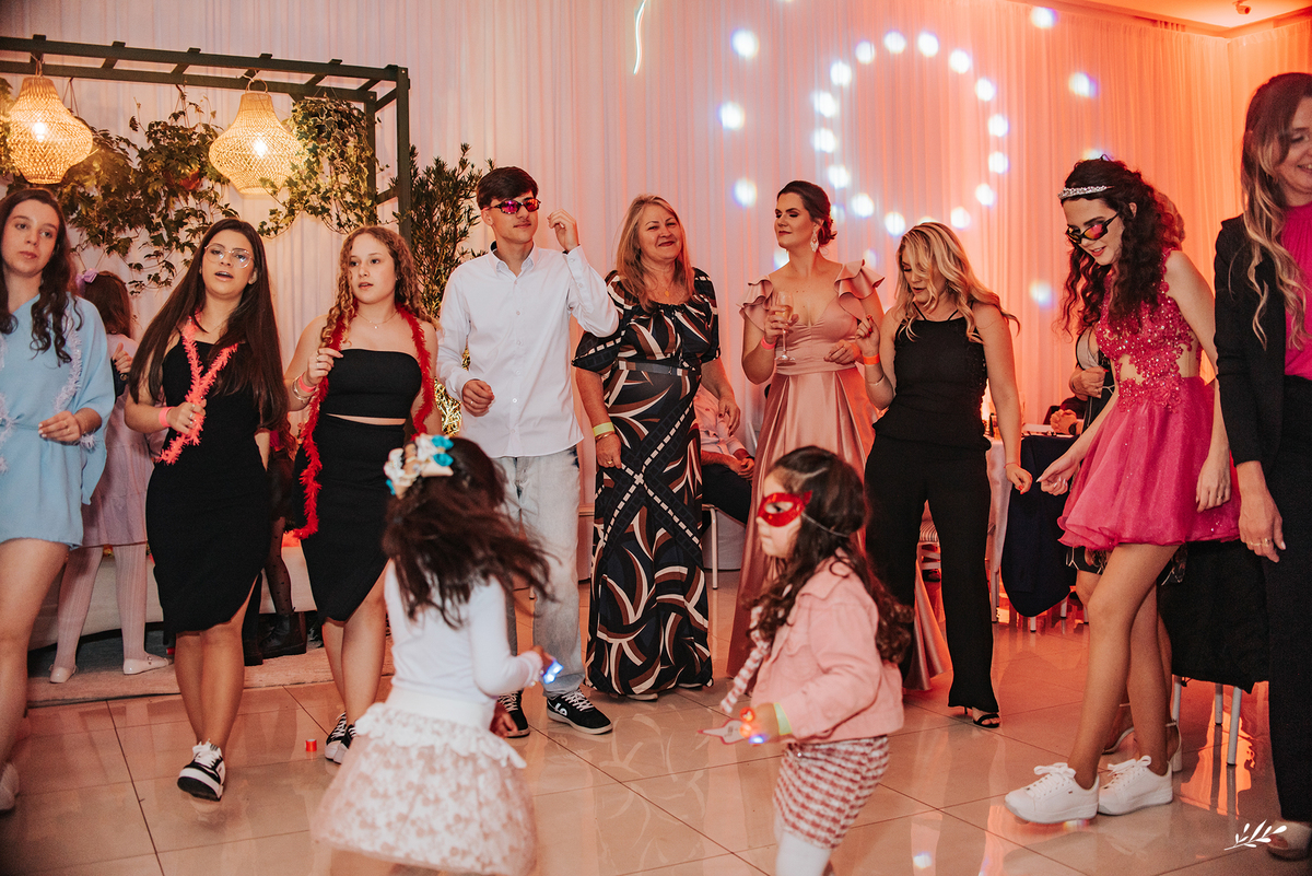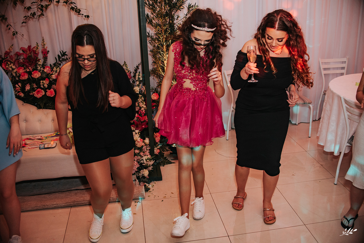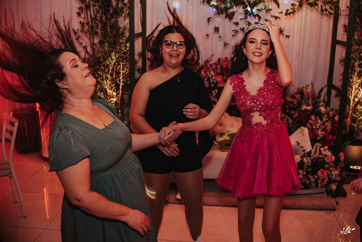 Nós cultivamos uma amizade tão querida com a Maria, que a Dani veio de presente para nós e de cara já nos conectamos! Ela é um encanto, gentil, delicada, de beleza única. A festa foi maravilhosa, decorada de amor, as luzes quentes ambientando o carinho que havia em cada detalhe, as flores em tons rosas adornando a feminilidade graciosa e delicada da Dani, as velas aquecendo a noite que prenunciava que jamais iria se apagar da memória de quem viveu. A família que ama a Dani de paixão, estava radiante vendo toda a felicidade de sua caçula.E foi incrível, com palavras de amor, canções que abraçaram, que fizeram dançar de alegria até o fim da noite!