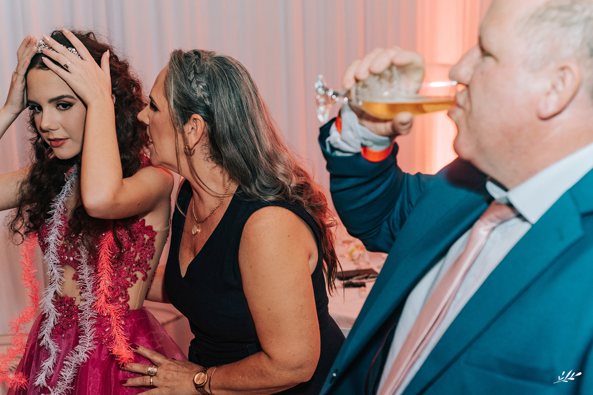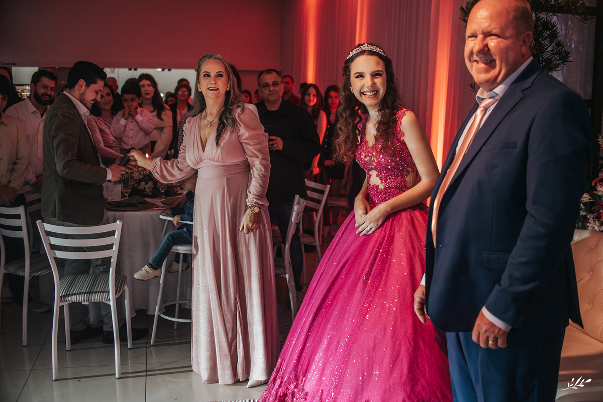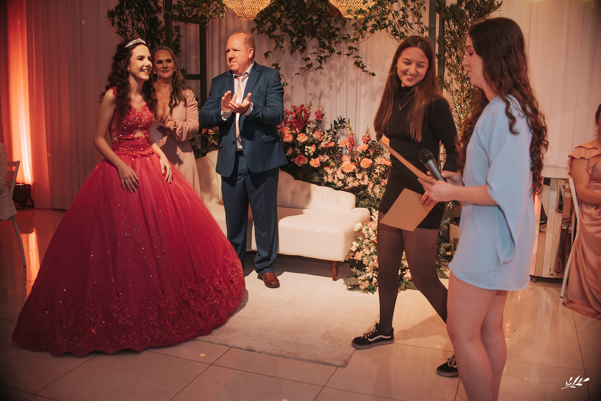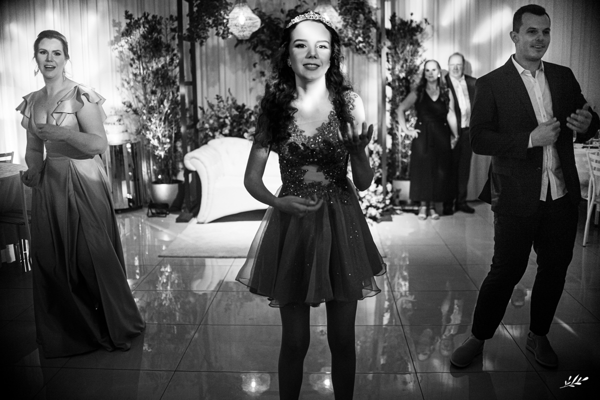 Nós cultivamos uma amizade tão querida com a Maria, que a Dani veio de presente para nós e de cara já nos conectamos! Ela é um encanto, gentil, delicada, de beleza única. A festa foi maravilhosa, decorada de amor, as luzes quentes ambientando o carinho que havia em cada detalhe, as flores em tons rosas adornando a feminilidade graciosa e delicada da Dani, as velas aquecendo a noite que prenunciava que jamais iria se apagar da memória de quem viveu. A família que ama a Dani de paixão, estava radiante vendo toda a felicidade de sua caçula.E foi incrível, com palavras de amor, canções que abraçaram, que fizeram dançar de alegria até o fim da noite!