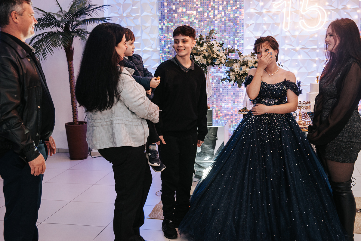 Seus pais, radiantes de orgulho, prepararam uma festa maravilhosa, pensada em cada detalhe com carinho para homenagear esse momento único na vida da filha. O brilho nos olhos deles ao ver Sofia entrando no salão, deslumbrante, dizia tudo: estavam realizados, felizes por ver sua menina crescendo com tanta graça, leveza e doçura.