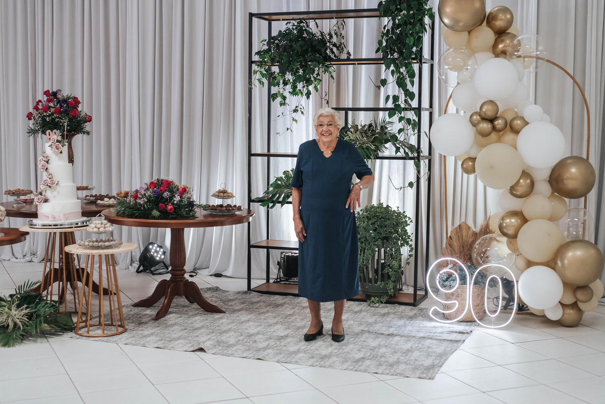 Foi uma manhã linda registrando o aniversário da maravilhosa Dona Dila. Ela estava cercada de todo carinho da família que organizou tudo para que fosse bem do jeitinho dela: alto astral, afetuoso e alegre. A neta Suane emocionou a todos com palavras do coração, relembrando a trajetória de muita garra e amor da avó e celebrou sua vivacidade já pensando em sua próxima festa! Assim é a dona Dila, uma mulher maravilhosa que conquistou tantos corações e que ainda ajuda e inspira a trilhar tantos caminhos com muita garra e alegria!