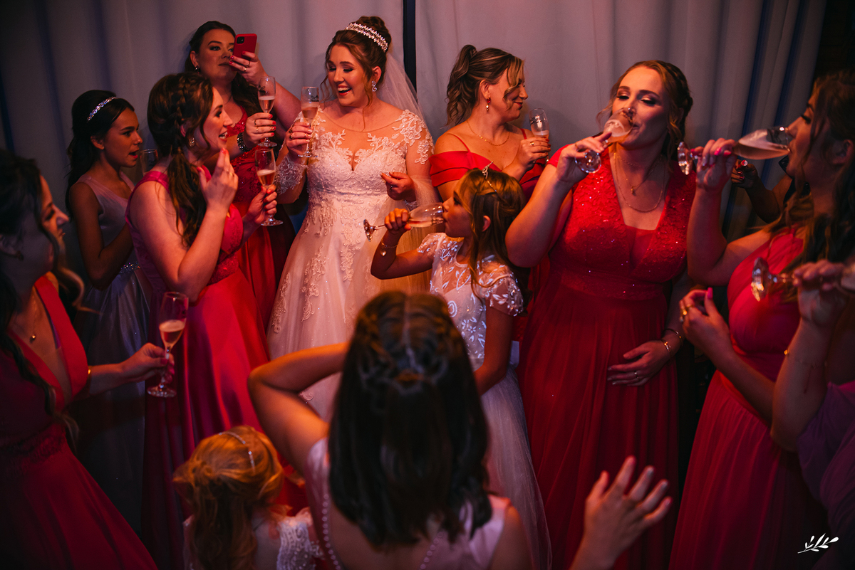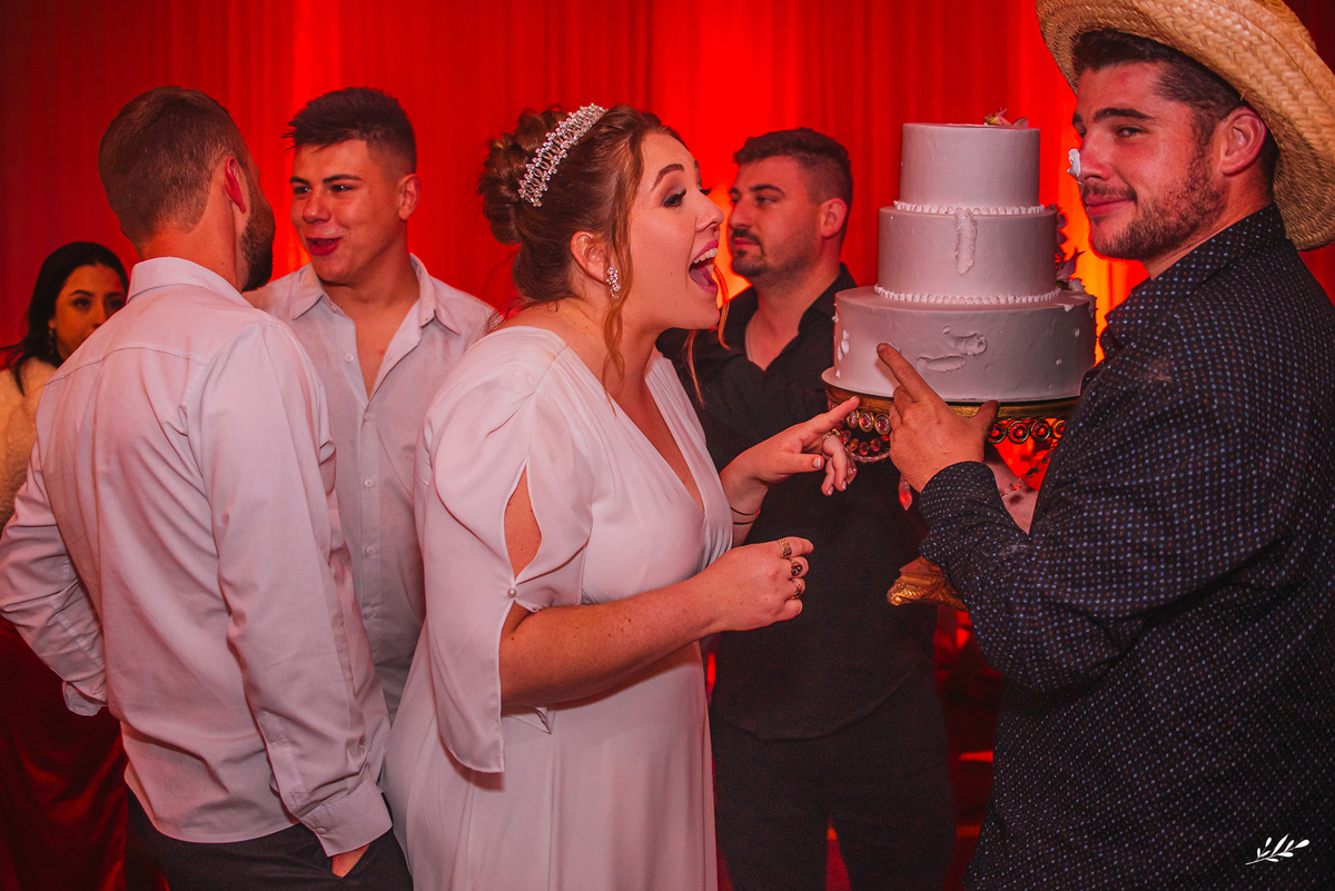 A Josi e o Felipe são uns amores, por onde passam conquistam corações e é claro que conquistaram os nossos também. A tranquilidade da Josi foi dando lugar a ansiedade de encontrar seu noivo no altar à medida que os minutos iam passando. Cercada do carinho da mãe, sogra e suas lindas madrinhas, ela sentiu seu coração já se enchendo de emoção. Enquanto o Felipe celebrava com muito chopp e fogos de artifícios rodeado de seus padrinhos super animados. Mas à medida que os minutos iam passando o nervosismo também tomava conta desse noivo. Numa linda cerimônia celebrada pelo Padre eles tiveram seu amor consagrado, entre lágrimas de felicidade. E a noite se seguiu com votos, desejos e carinhos distribuídos aos noivos pelos quase 300 convidados que fizeram dessa festa épica. Às 5 da manhã, quando achávamos que se renderiam, a euforia reanimou cada um dentro daquele salão que celebrava essa união com toda a alegria do mundo. O churrasco veio junto com o amanhecer e fechou com chave de ouro e muito carinho esse dia maravilhoso.