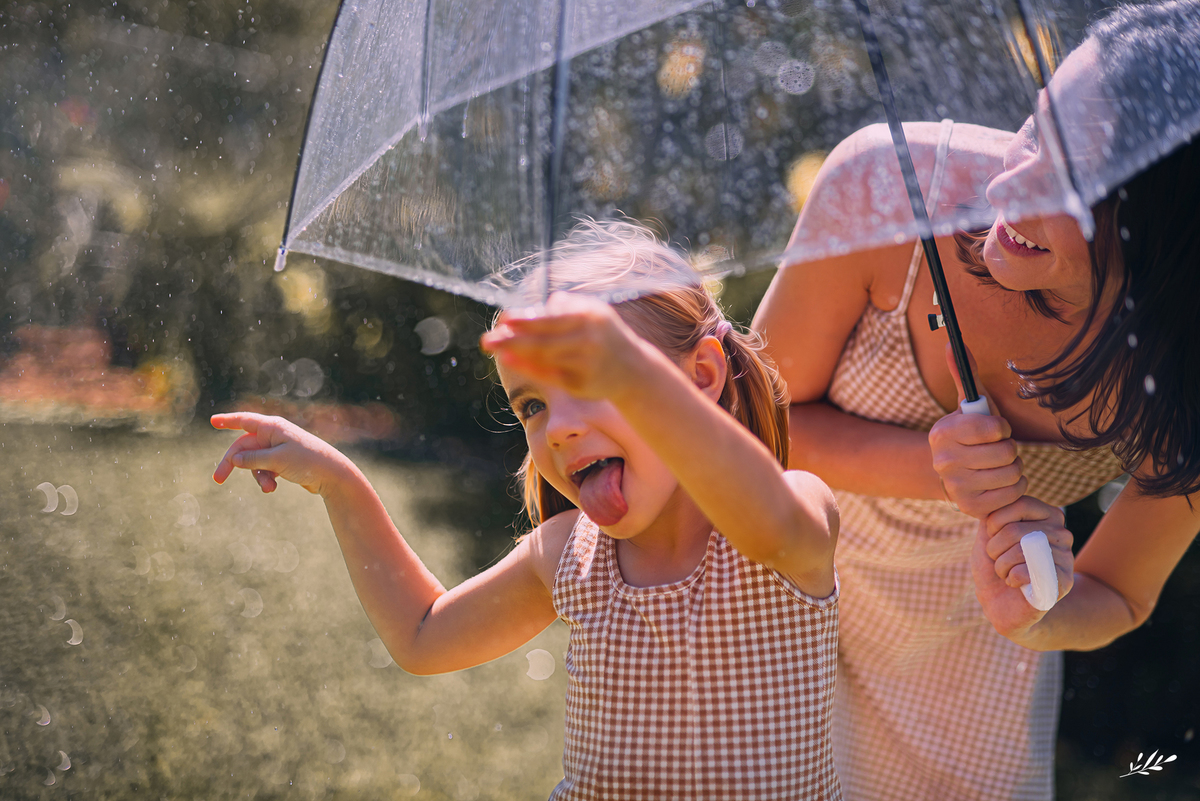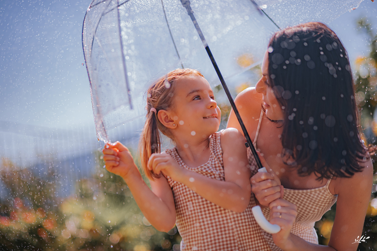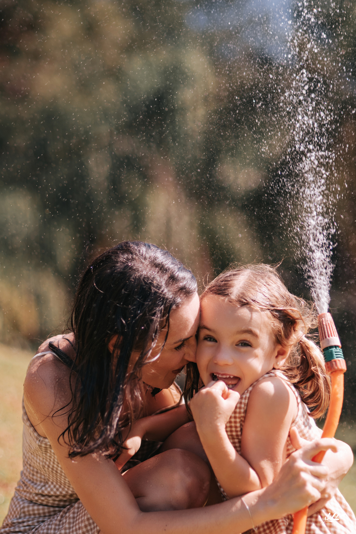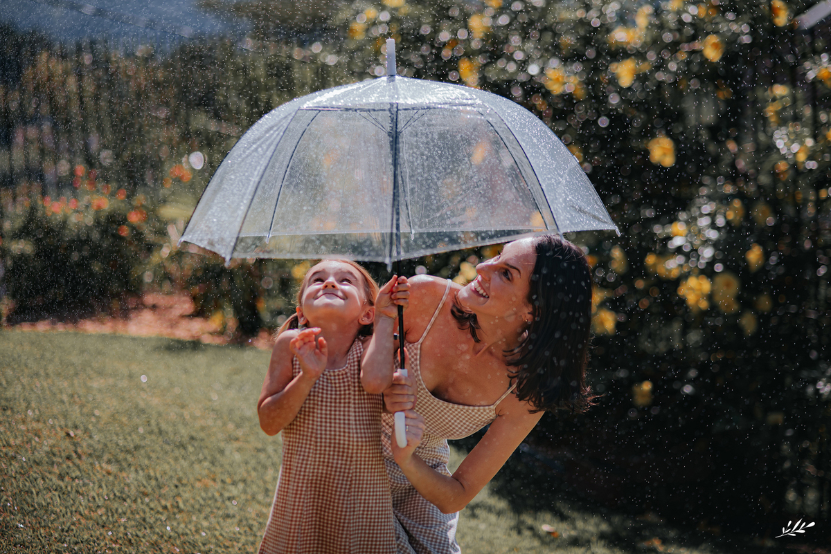 Temos memórias tão gostosas dos nossos banhos de chuva na infância. Daí a ideia dessa sessão bem querida com essas meninas mulheres maravilhosas. Clarice estava tão feliz, brincando com sua mamãe e sua dinda, que nem vimos o tempo passando, a felicidade fez o tempo parar diante de nós!
